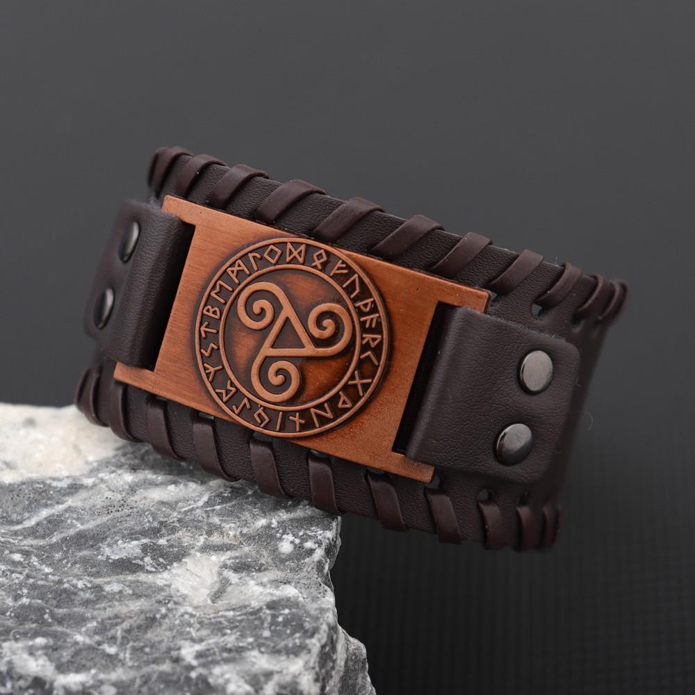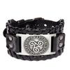New Retro Wide Leather Nordic Rune of Odi Bracelet for Men Celtic Viking Solomon Pattern Party Gifts Accessories