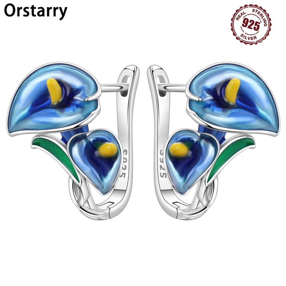 Orstarry Orijinal 925 Ayar Mavi At Nalı Lotus Küpeler Kadın Küpe Uçları Halka Küpe Yıldönümü Takıları Trend Hediye
