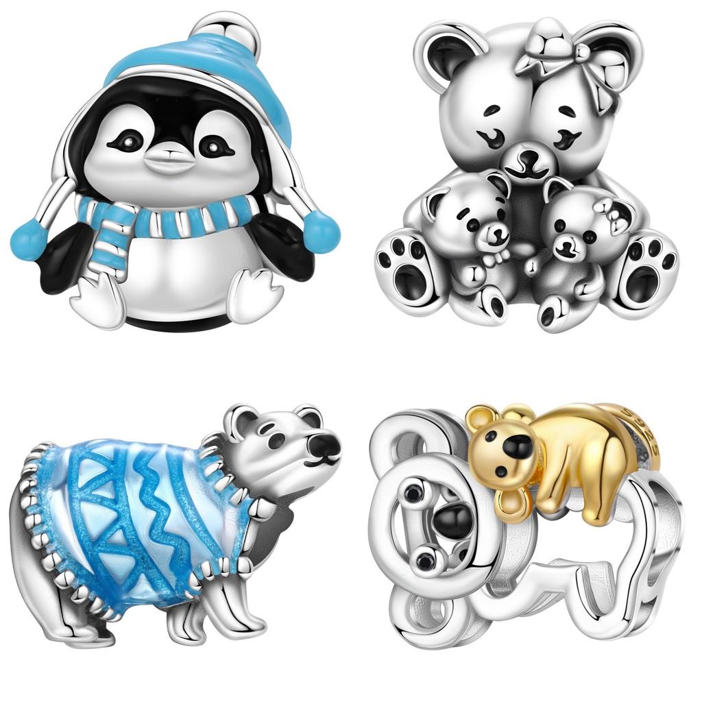 Orstarry 925 Silver Blue Hat Penguin Beads Charm Bracelet DIY Jewelry Trendy Gifts for Party
