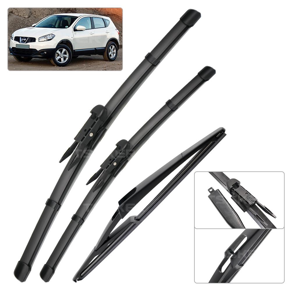 For Nissan Qashqai J10 2006-2013 2007 2008 2009 Wiper Front & Rear Wiper Blades Windshield Windscreen Window Brushes 24"+15"+12"