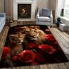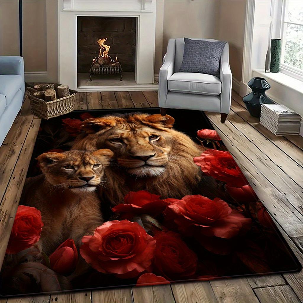 Romantic Rose & Lion Couple Rug – Square Dual-Lion Design Carpet for Bedroom or Living Room Indoor Decor