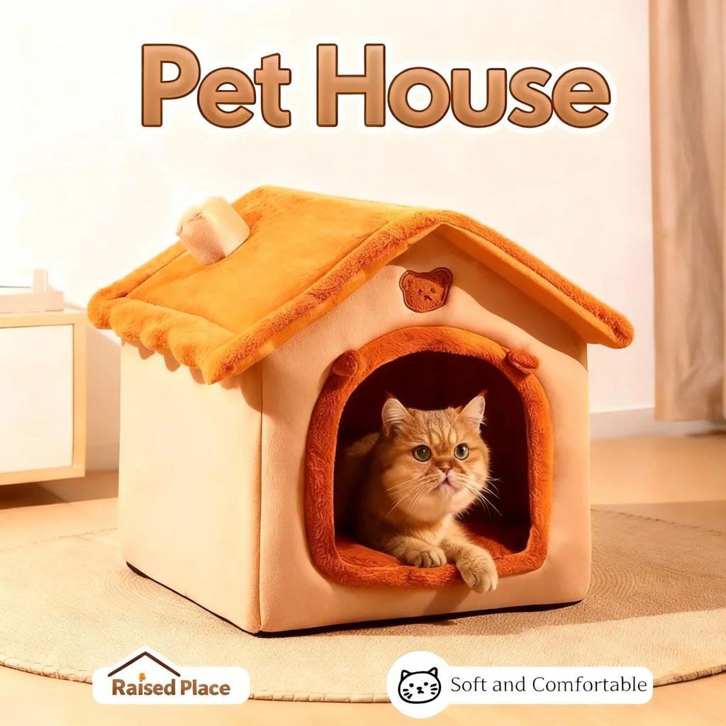 All-Season Detachable Washable Pet Kennel Semi-Enclosed Cuddly Pet House Warm Cat Bed