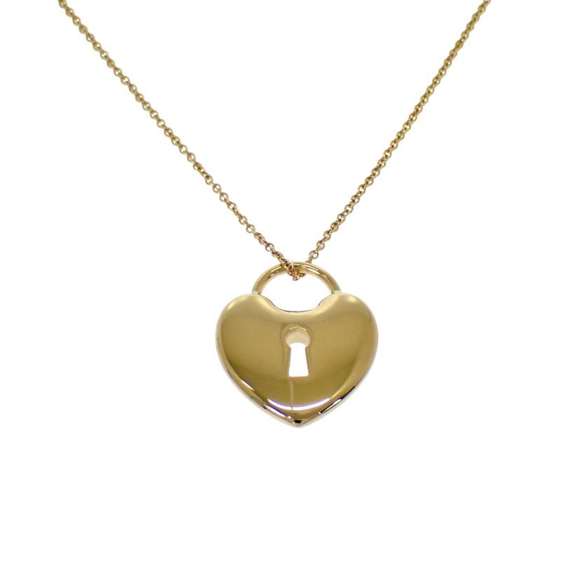 Production features:This is the TIFFANY & Co. Heart Lock Necklace for women. This masterpiece from TIFFANY & Co. is inspired by the padlock used to protect precious items. The plump, thick heart shaped like a padlock adds a soft sparkle and presence. The slender yet sturdy chain, typical of TIFFANY & Co., accentuates the pendant top and flatters the décolleté, elevating your style with a simple T-shirt or knit.