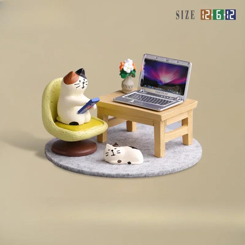 Cute Working Cat Resin Ornaments DIY Office Scene Creative Desktop Decoration Original Design Miniatures for Bookshelf Decor New