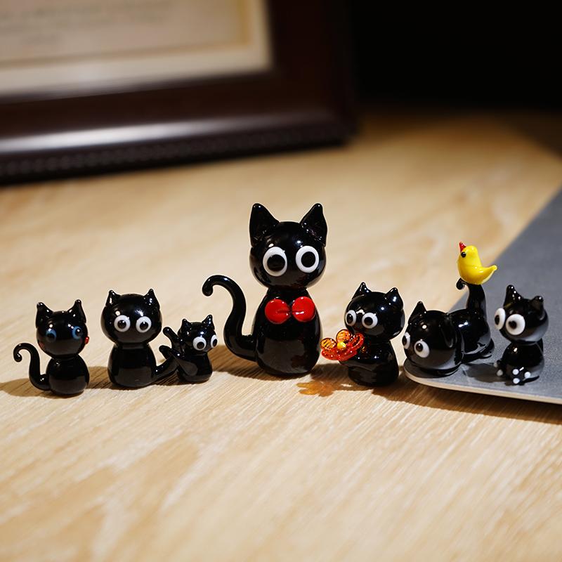 Cartoon Black Cat Mini Glass Ornaments Handmaking Kitten Cute Crafts Colored Glaze Table Decoration for Birthday Gifts 2025 New