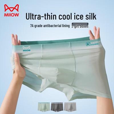 MiiOW 3 adet Buz İpek Erkek Külotu AAA İletken Antibakteriyel Erkek İç Çamaşırı Yaz Seksi Dikişsiz Boxer Şort L-5XL
