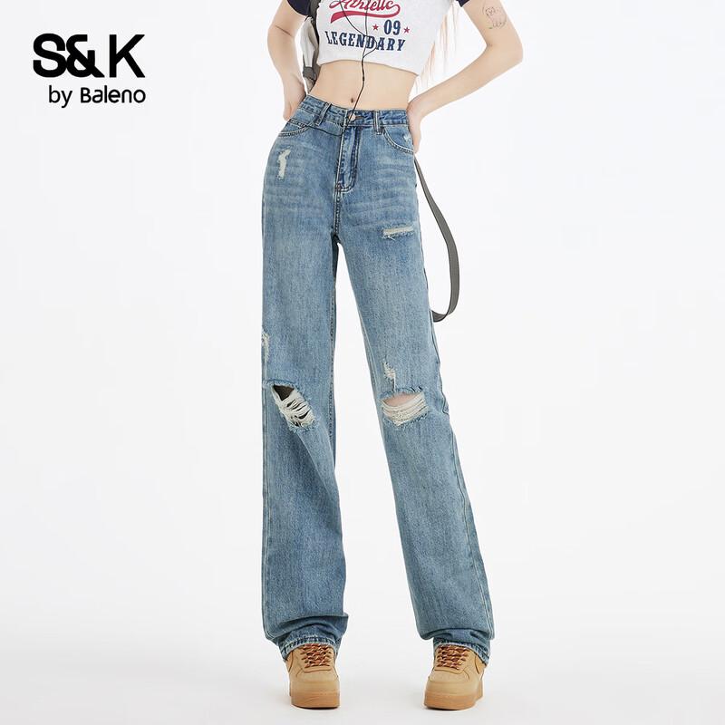 Baleno S&K Women's High-Waisted Ripped Straight-Leg Jeans