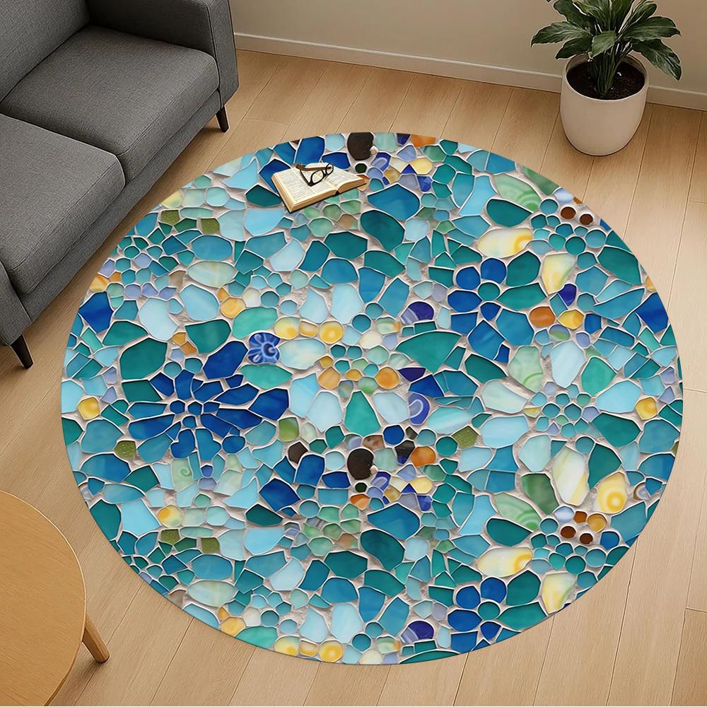 1pc mosaic art Round Chair mat Area Rug - Non-Slip, Floor Mat for Office, Bedroom, and Indoor Decor c1118146