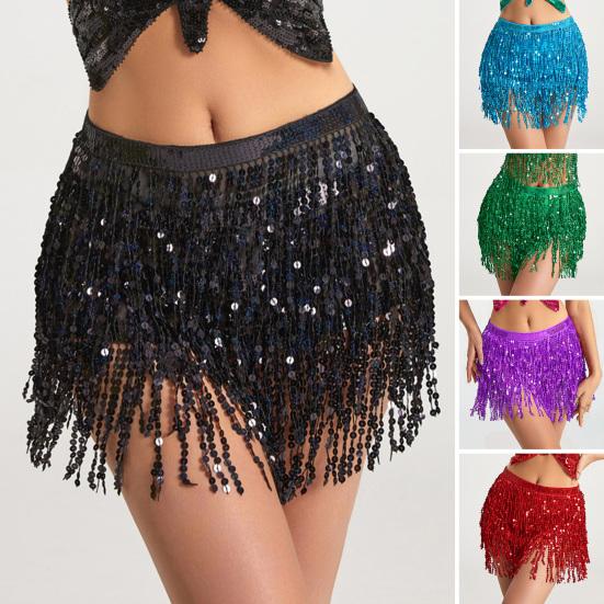 Partiler, festivaller veya sahne performansları için mükemmel olan bu pullu püsküllü dans eteği, parlak renkleri ve karmaşık tasarımıyla herkesin dikkatini çekecek.