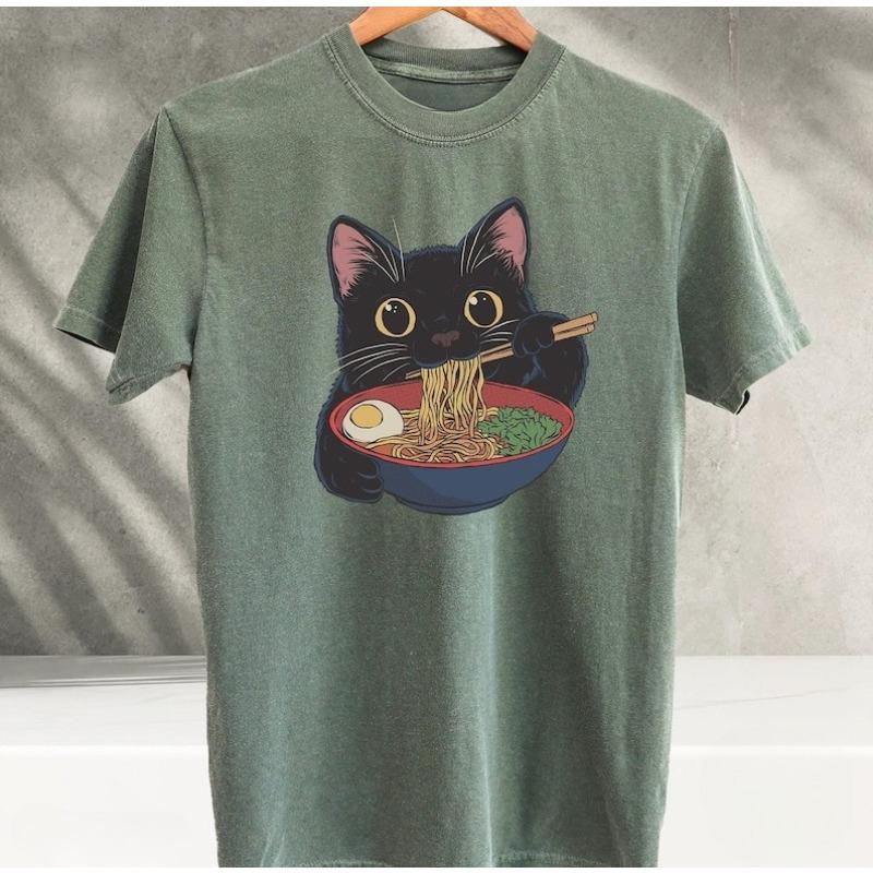 Ramen Cat TShirt Kawaii Anime Cat Japanese Foodies Graphic Tee Unisex Cotton Cute Cat Lover Shirt Harajuku Streetwear Y2K Top