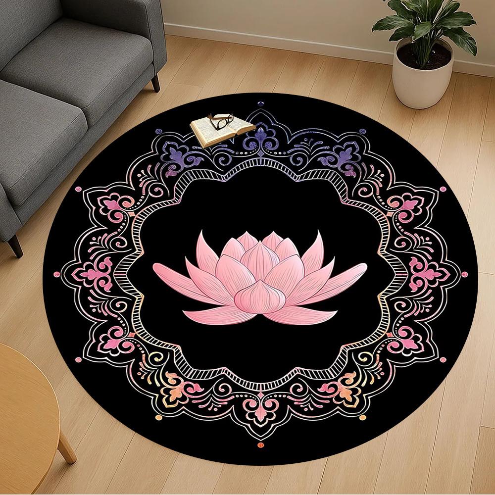1pc Lotus Mandala Round Chair mat office Area Rug - Non-Slip, Floor Mat for Office, Bedroom, and Indoor Decor p127113