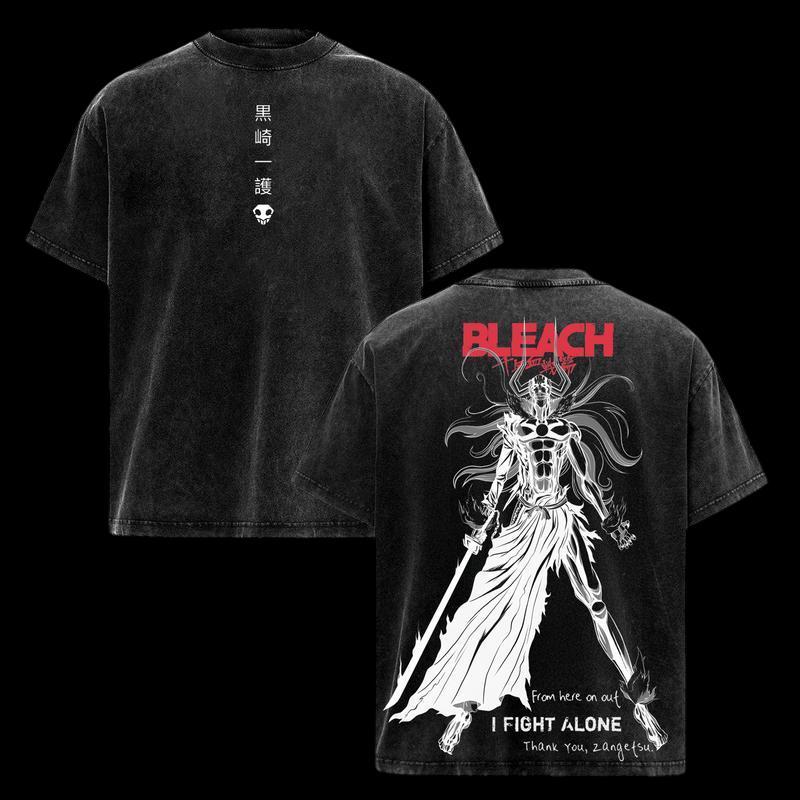 Japanese Manga BLEACH Kurosaki Ichigo T Shirt Gothic Washed Oversized T-shirt For Men's Unisex Clothing Short Sleeve Cotton Tees