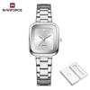 NAVIFORCE Original Simple Women Quartz Watch Square Case Stainless Steel Strap 3ATM Waterproof Lightweight Casual Fashion Women Watch NF5075