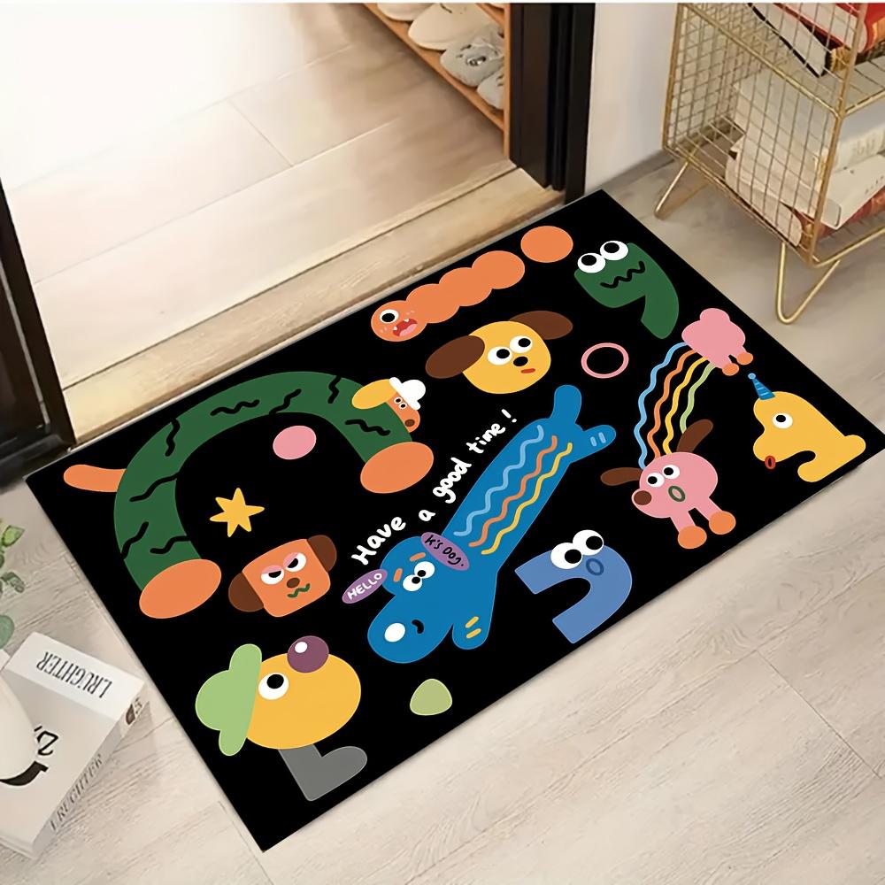 Colorful cartoon animal letters Flannel-printed floor mats has non-slip function is suitable entrances bathroom welcome carpets