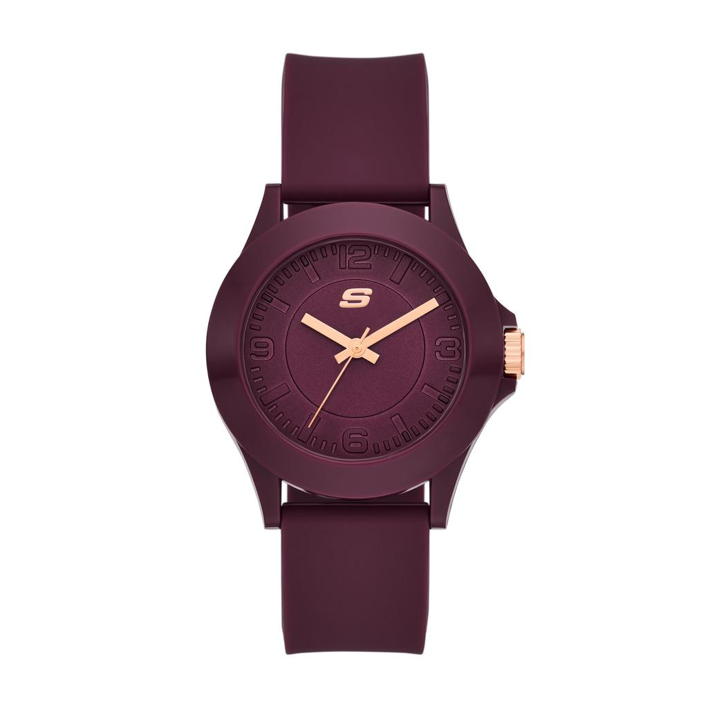 Watch Band: Durable burgundy silicone band is easily adjustable for a custom fit.