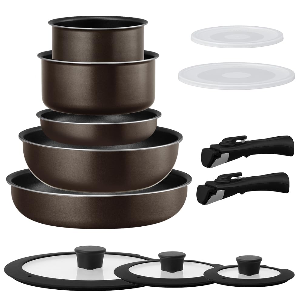 IRIS OHYAMA Frying Pan Set with Diamond Coated Removable 3 Metallic Brown 12-Piece Pans, Induction/Gas Compatible, Handles, Lightweight, Colors,