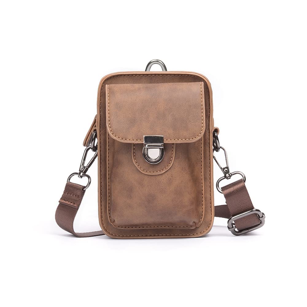 Whatna Leather Mini Shoulder Crossbody Mini Carabiner Belt Loop Mini Waist Bag with Carabiner and Shoulder Perfect for School or 6017 Men's Bag, 4-Way