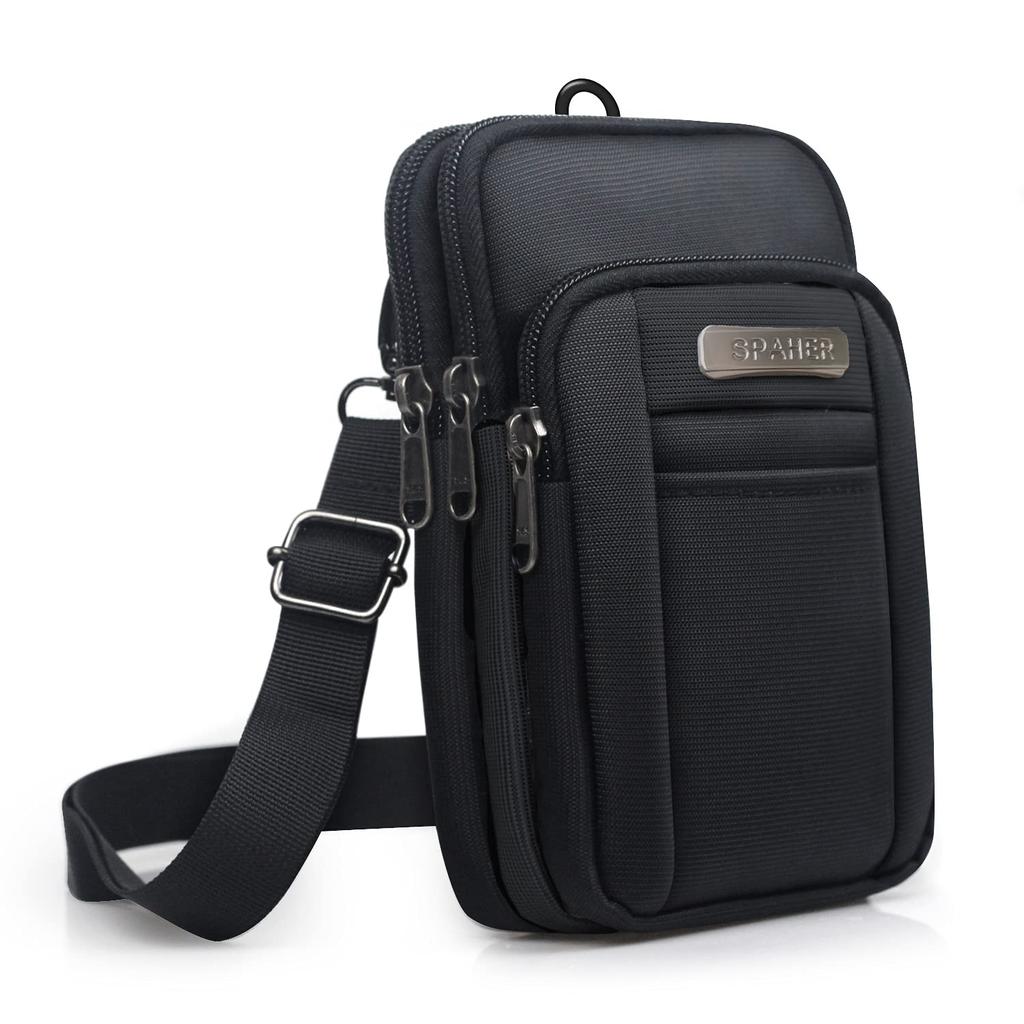 SPAHER Smartphone Waterproof Waist Small Pouch for Outdoor and Storage for Phones and with Shoulder Strap and Black Men's Pouch, Pouch, Size,