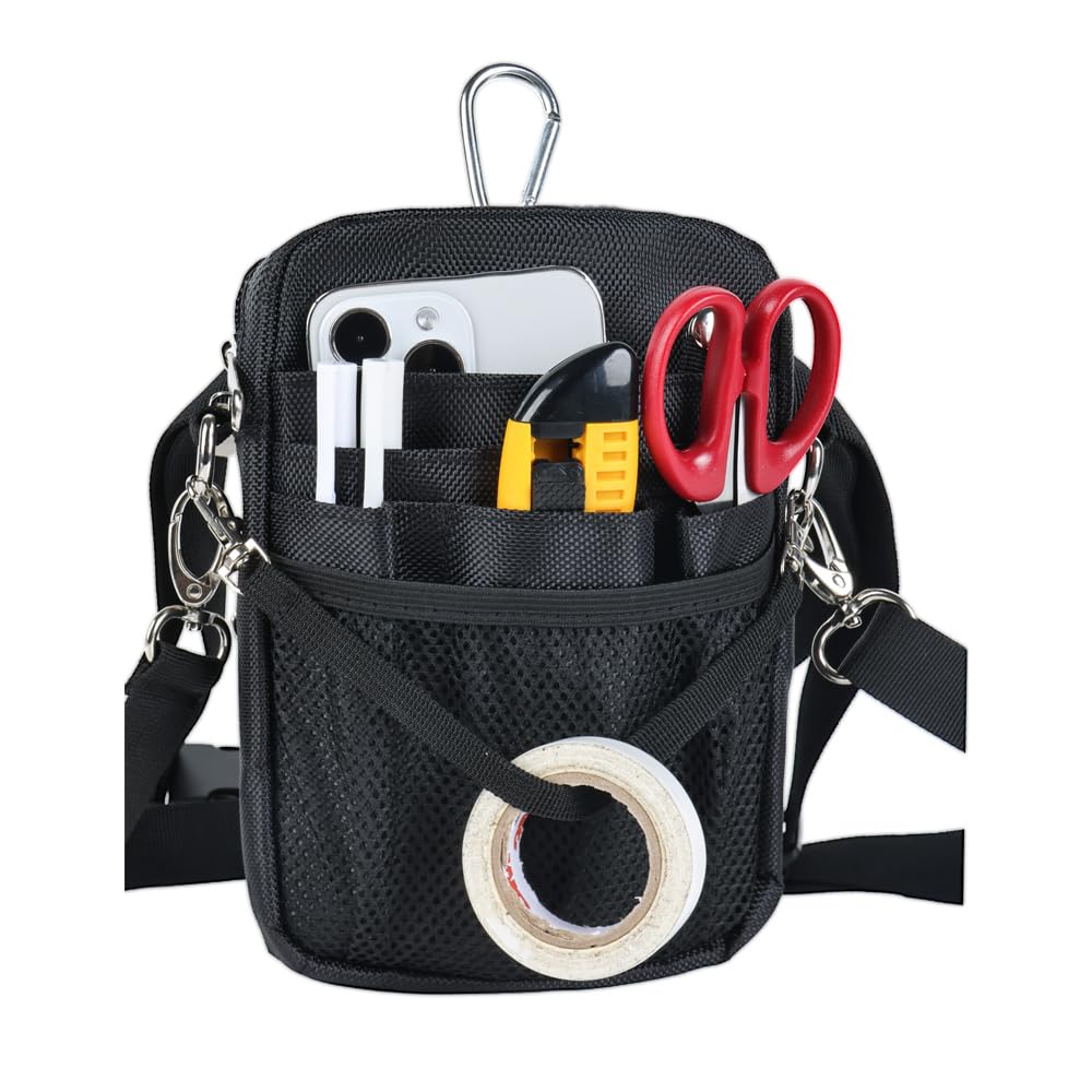■[Product Details] Product Contents: Waist bag, shoulder strap, waist belt, tape holder, carabiner. Size: Height 19 x Width 14 x Depth 4cm. Weight: 190g. Material: 1680D polyester (Oxford weave). ■[30-Day Warranty] We offer a 30-day manufacturer's warranty. In the unlikely event of a defect, we will replace it with a new one.