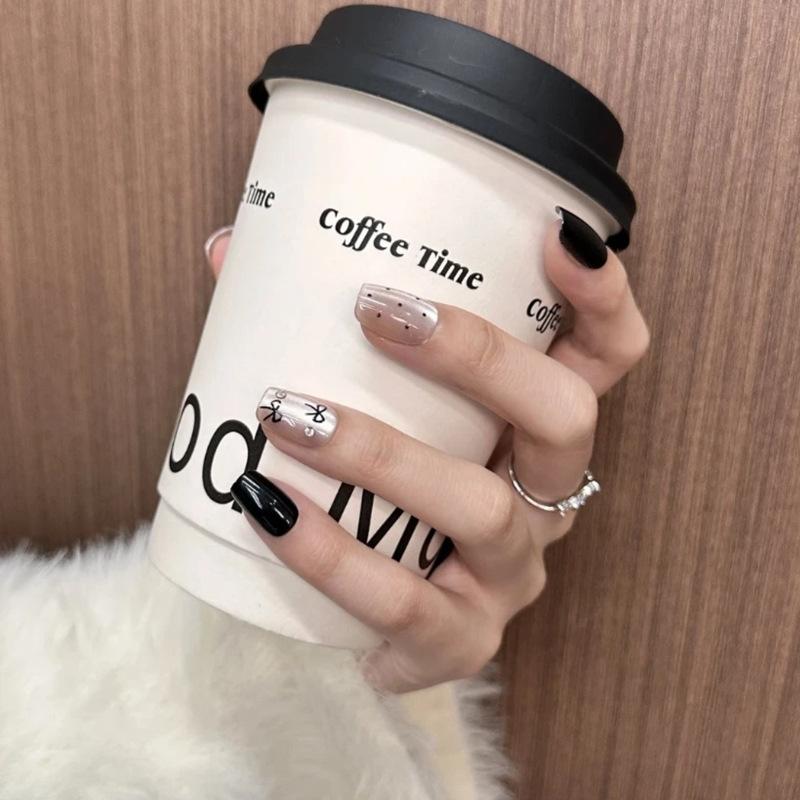 Domestic hot-selling nail art films, cute cartoon kittens, classic cat's eye bows, polka dots, short wearing nail films.