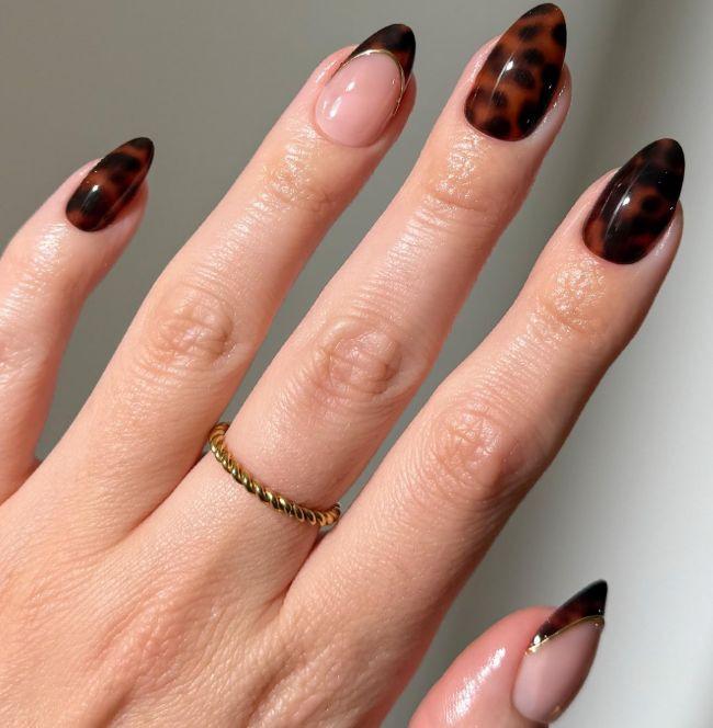 New manicure nail film European and American Spice Girls style leopard print smudge design French short almond nail wearing armor