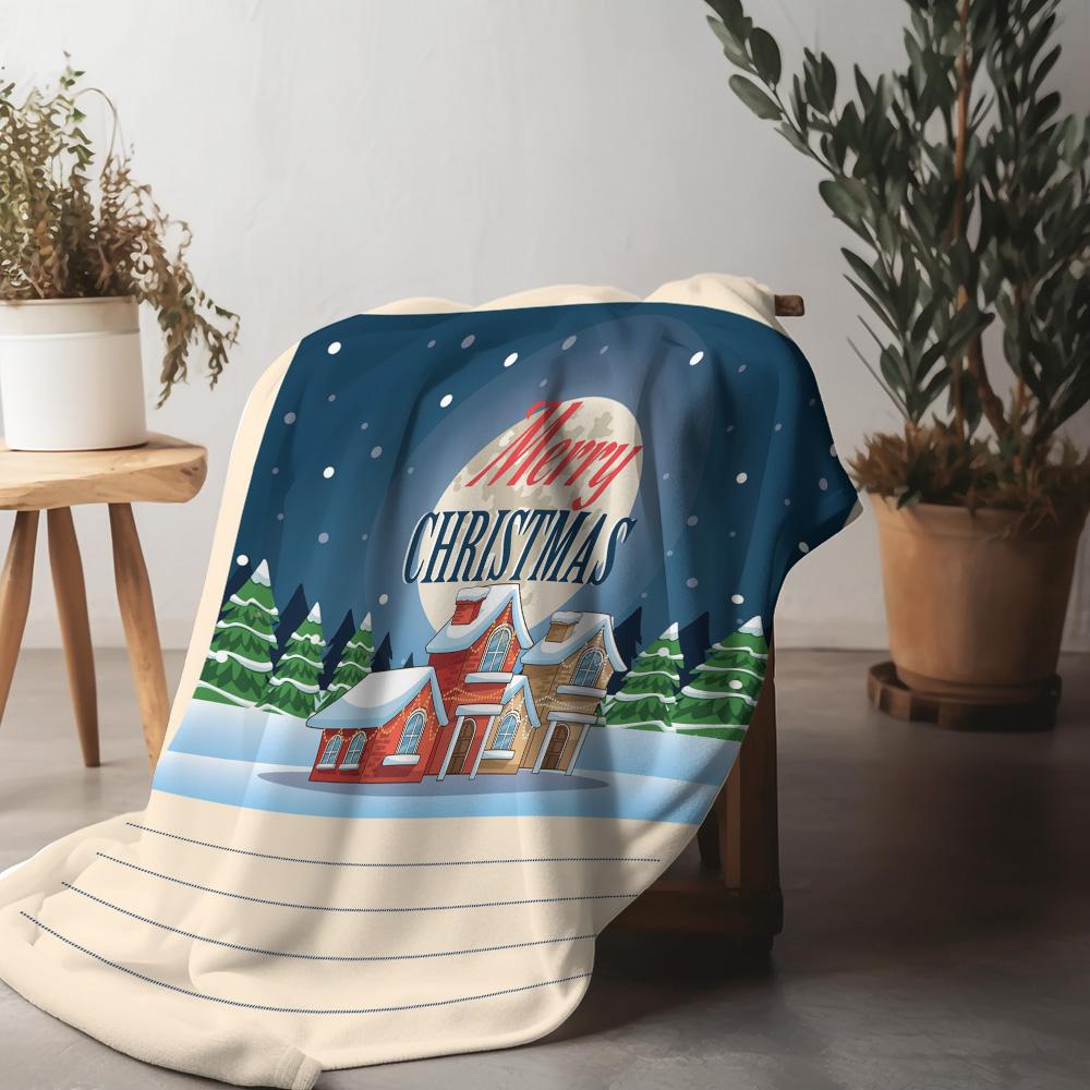 Cozy Winter Throw Blanket Christmas Snow Village Decor Festive Holiday Flannel Warm Home Decor Gift Cozy Cottage Scene