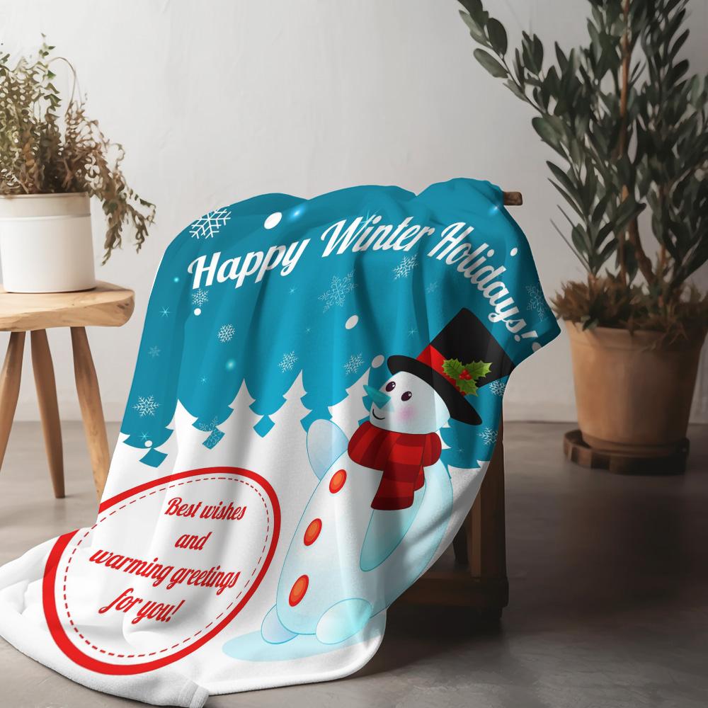 Fluffy Snowman Throw Blanket Cozy Winter Decor Holiday Gift Christmas Home Decor Festive Warm Soft Plush Blanket