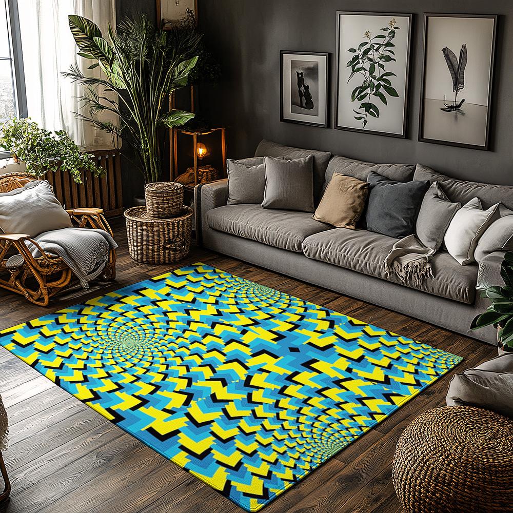 Tuniu Geometric Psychedelic Rainbow Swirl Area Rug Non-Slip Home Floor Carpet Mat