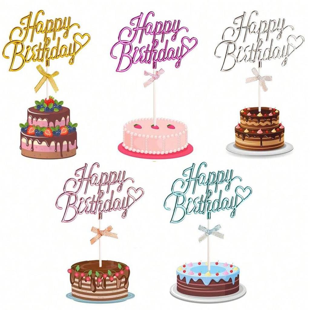 1Pcs Happy Birthday Cake Topper Plastic 3D Double Sided Happy Birthday Sign for Cake with Bow, Idea for Cake Decoration Supplies