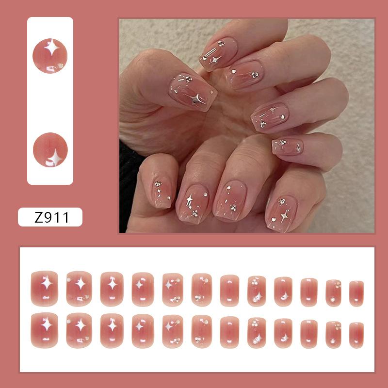Sweet Nail Patch Removable Nail Star Wearing Nail Solid Color Blush Nail Patch Diamond Short Nail 24 pieces