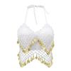 Designed with halter neck, sleeveless, built-in chest pads, shiny sequins and fringe, lace-up crop top makes you very eye-catching.