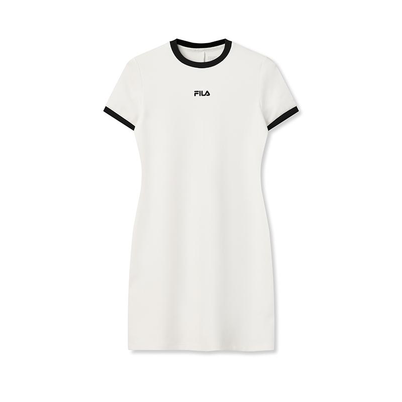 FILA Original Color Block Edge Fashion Simple Classic Retro Casual Versatile Comfortable Round Neck Slim Short Sleeve Dress F51W629301FWT