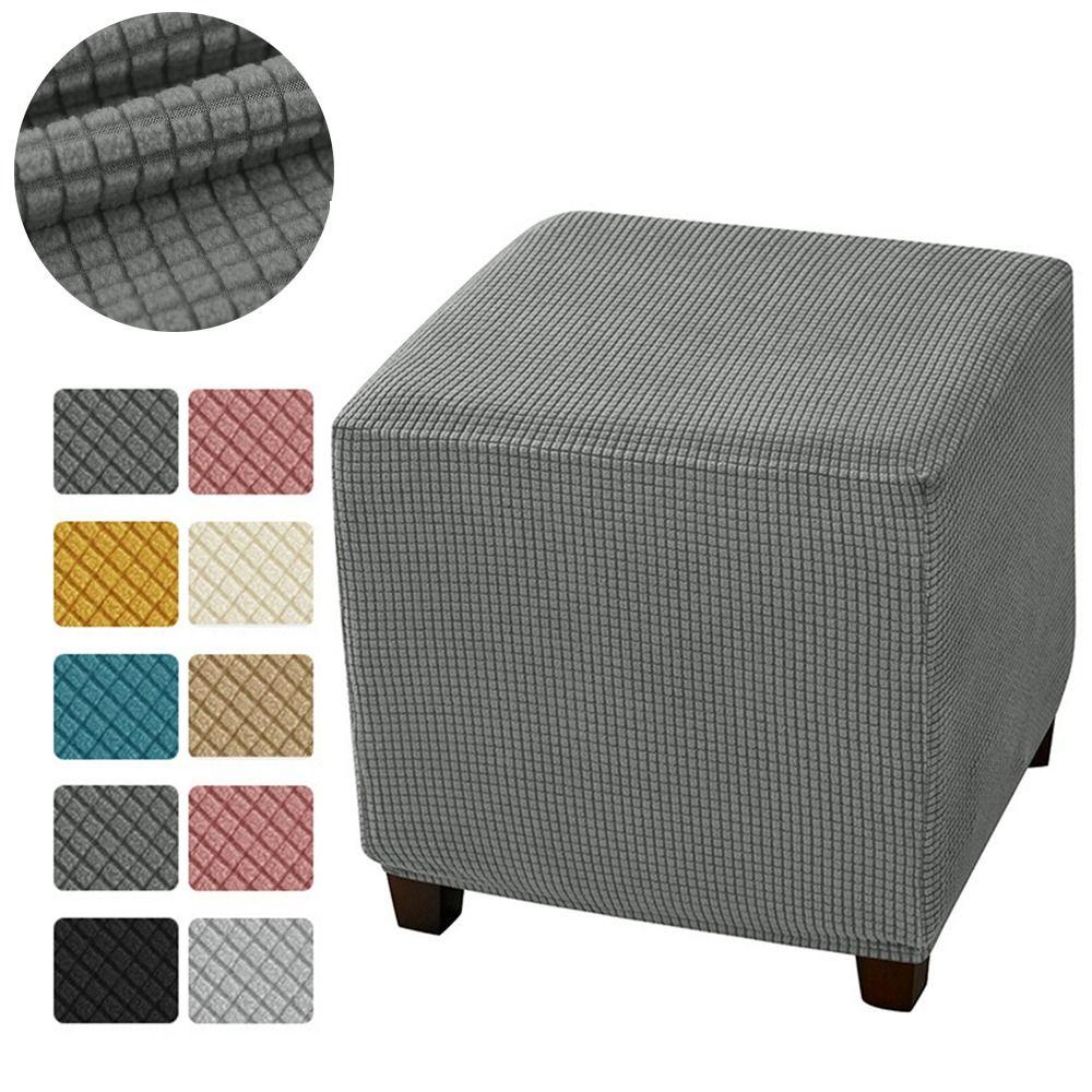 Elastic Jacquard Ottoman Cover Velvet Footrest Slipcover New Footstool Case Home Decor