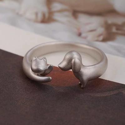 Cute Dog Cat Opening Ring Dull Polish Valentine's Day Gift Unique Animal Couple Ring Women Men