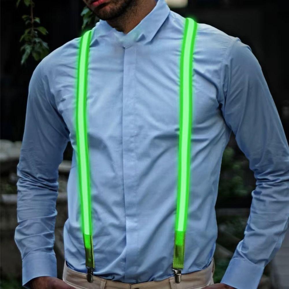 Light Up Men's LED Suspenders Elastic Luminous Trousers Suspender Pants Strap Clip Music