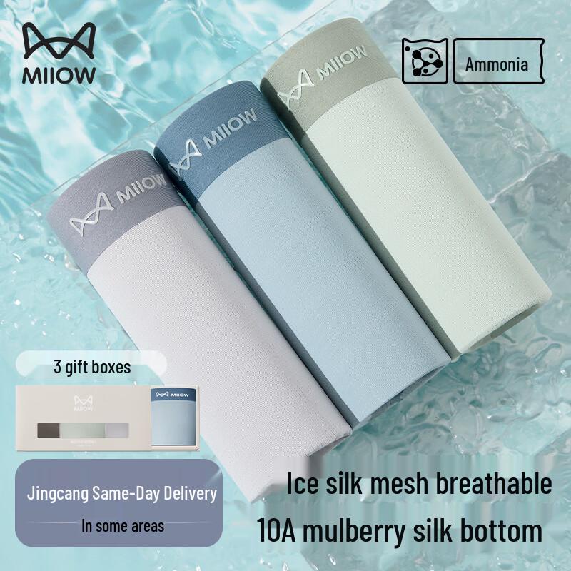 MiiOW Men's 2026 Breathable Ice Silk Boxer Briefs 3-Pack