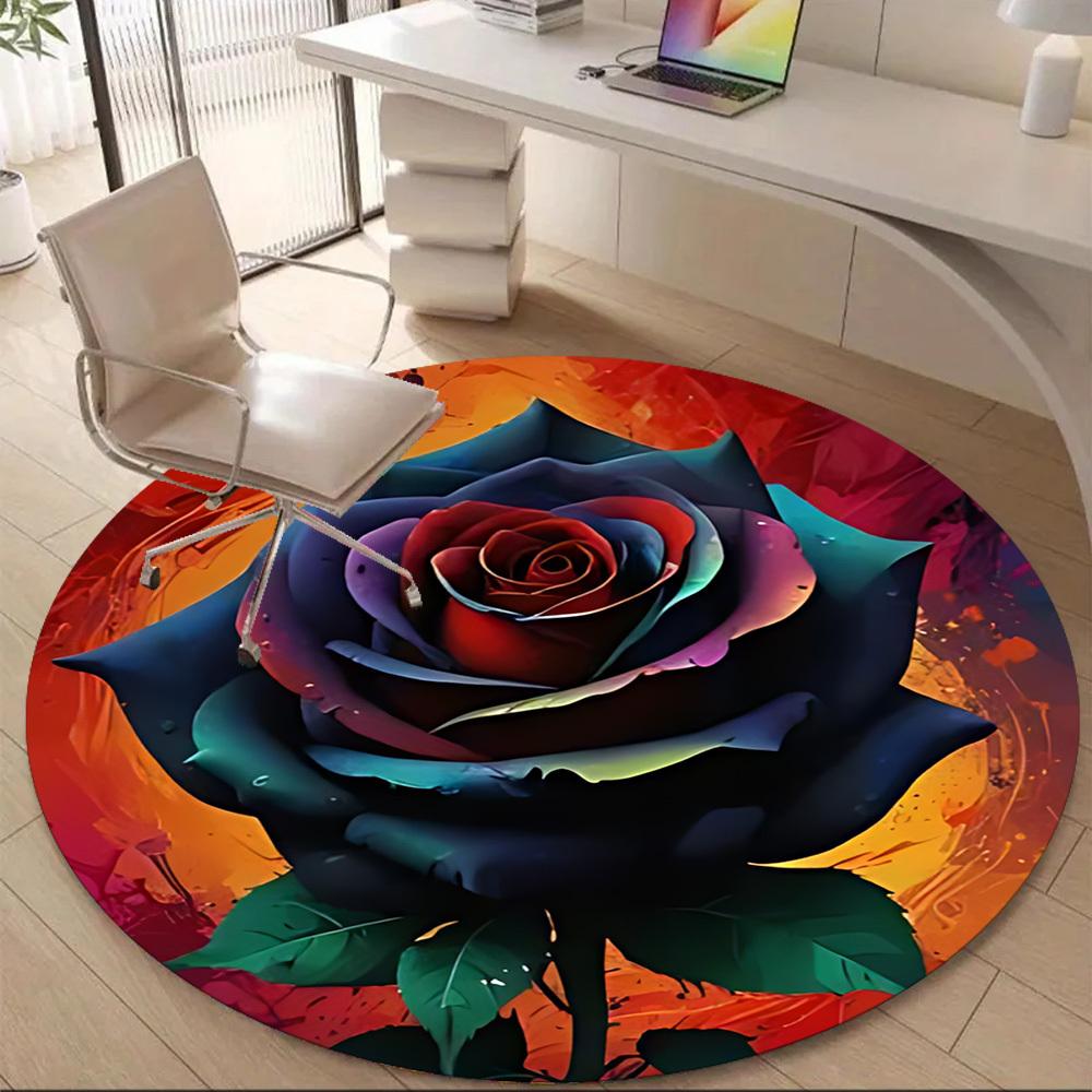 1pc Rainbow Rose Office Round Area Rug, Mat Suitable ForOffice, Under Office Chairs Bedroom Living Room Home Decor, Room Deco