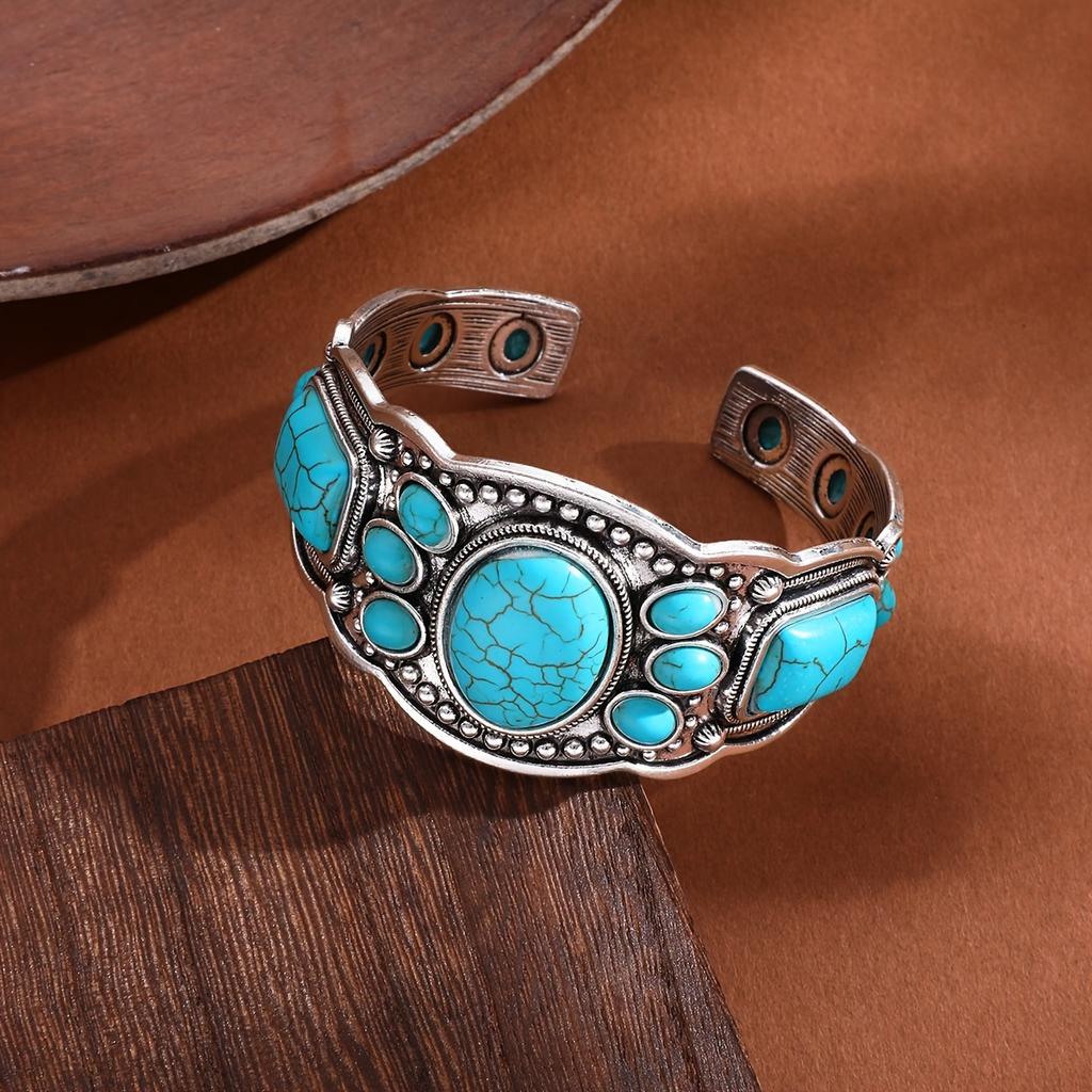 Retro Bohem Doğal Turkuaz Manşet Bileklik Etnik Stil Tatil Günlük Seyahat Aksesuarları Kadınlar İçin Boho Zarif Aksesuarlar