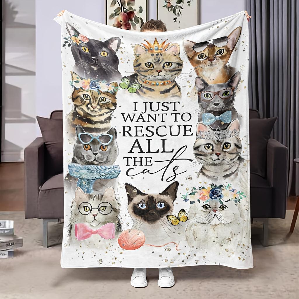 Watercolor cat costume pattern Flannel printed blanket suitable for all seasons suitable for living room office sofa and travel