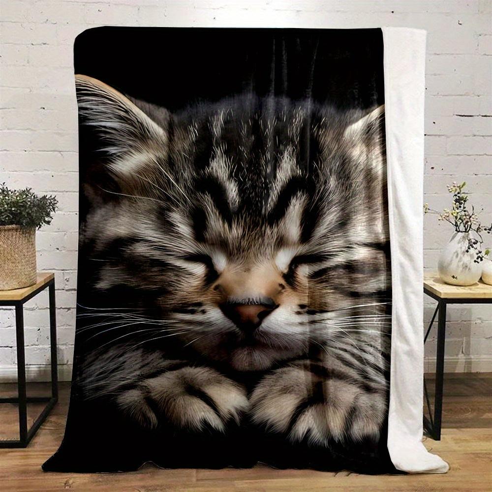 Cute tiger-spotted kitten pattern Flannel printed blanket suitable for all seasons suitable for living room office sofa travel