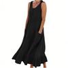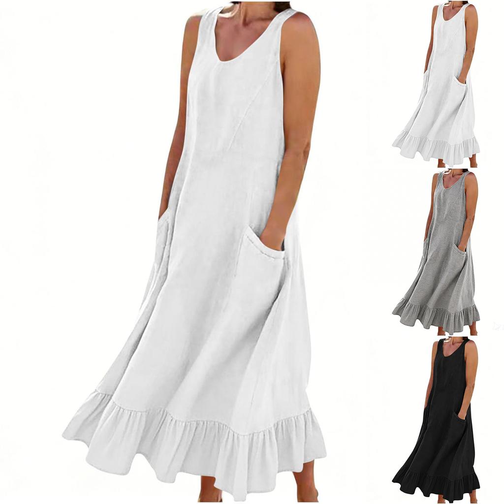Women's Fashion Casual Colour Sleeveless Cotton Linen Pocket Dress