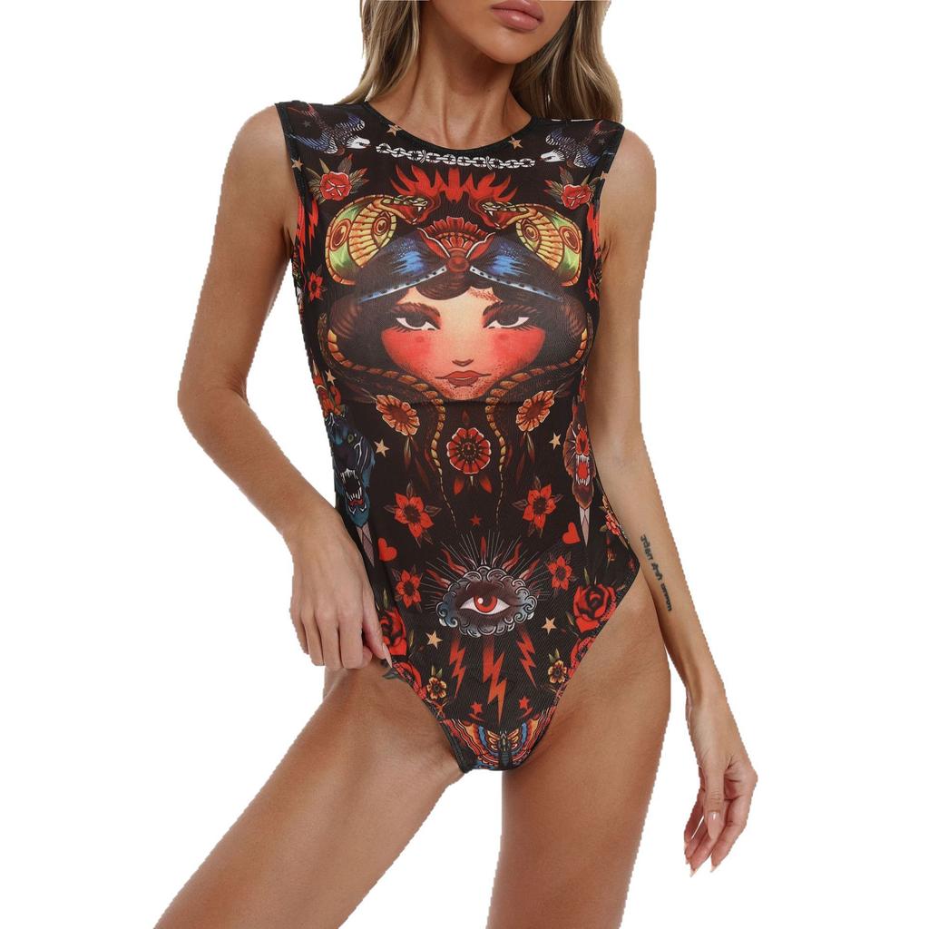 Women's Mesh Monokini Bathing Suit Long Sleeve One-Piece Swimsuit, UV Protection Swimwear