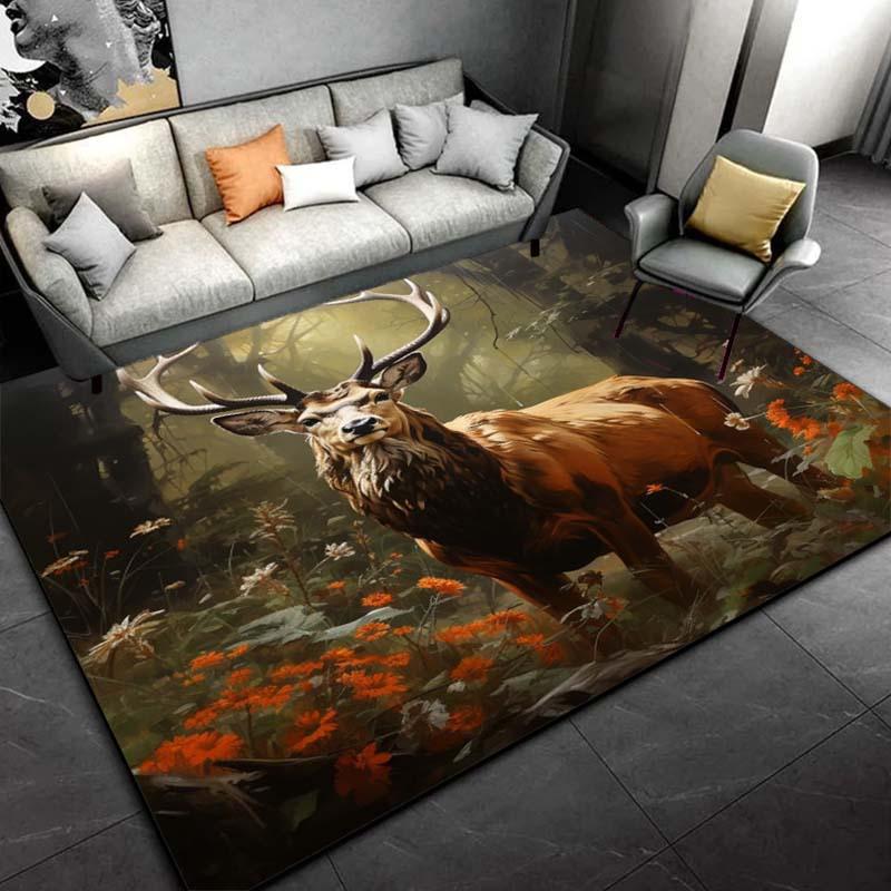 Forest Deer Rug: Bring Nature's Beauty into Your Home | Wildlife Inspired Design Indoor Outdoor Area Rugs Skid resistant carpet