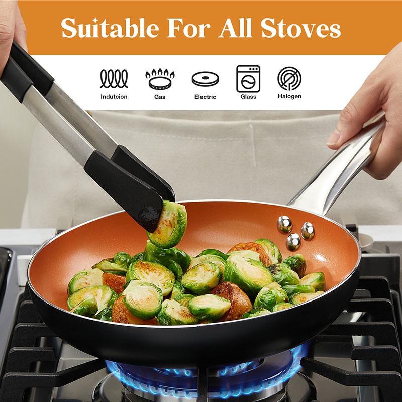 8"10" Copper Nonstick Frying Pan with Lid Titanium Ceramic Interior Saute Pan Omelet Pan Kitchen Cooking Skillet Cookware