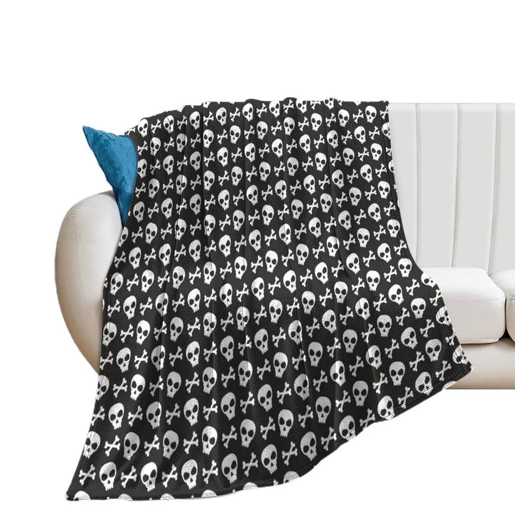 Skull & Crossbones on Black // Halloween Collection Throw Blanket Moving Winter beds for winter Heavy Blankets