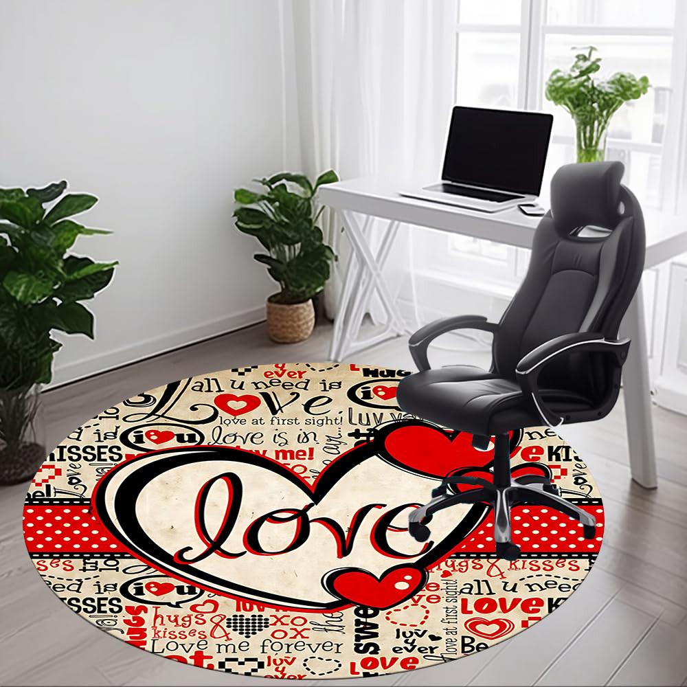 1pc Love Hearts Decor Carpet for Office Non-Slip, Round Carpet, Soft & Comfortable, Carpet for Office, Lightweight Round Floor Mat yy251226076