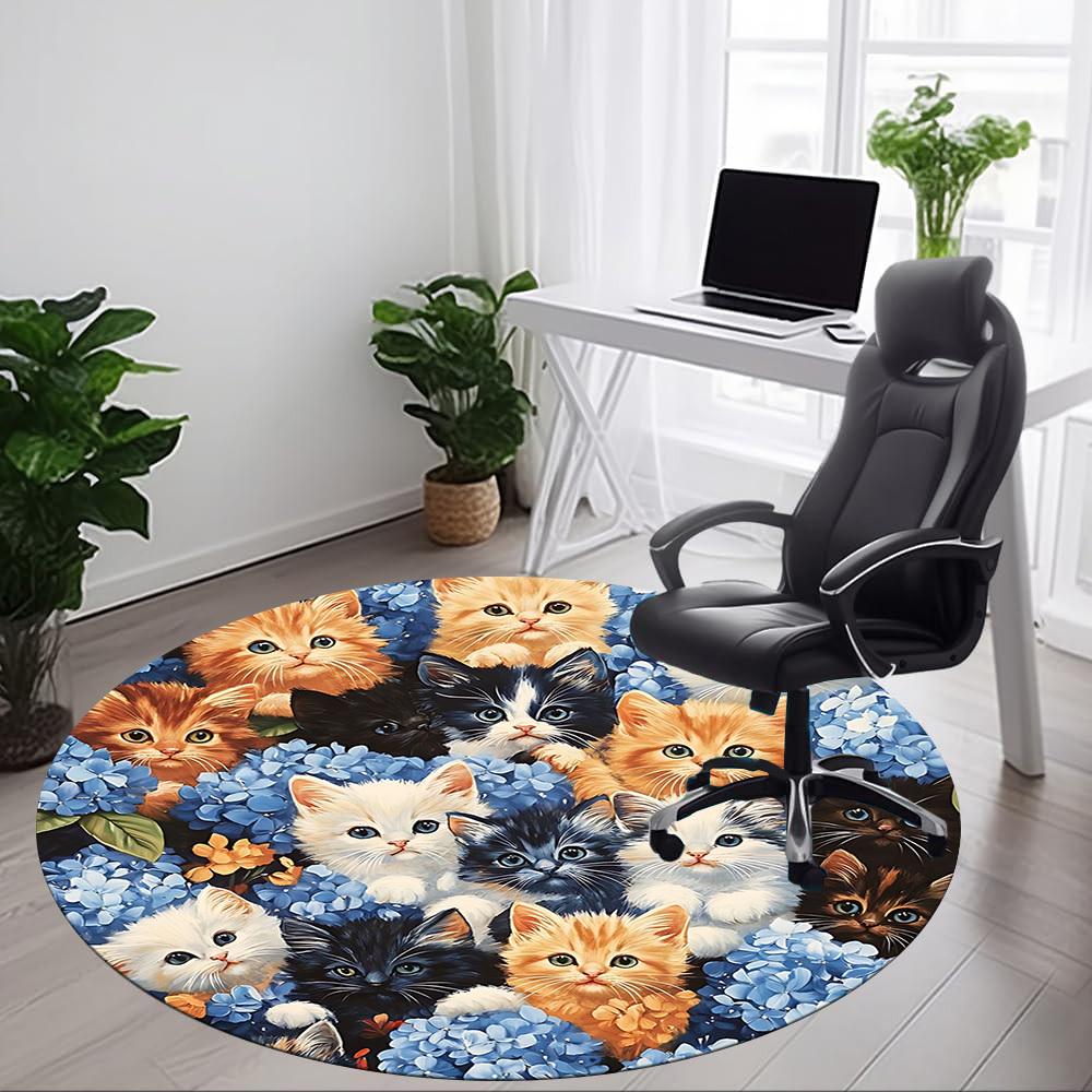 1pc Cat Flowers Office Round Rug, Carpet for Office, Gaming, Lightweight Round Floor Mat yy260208078