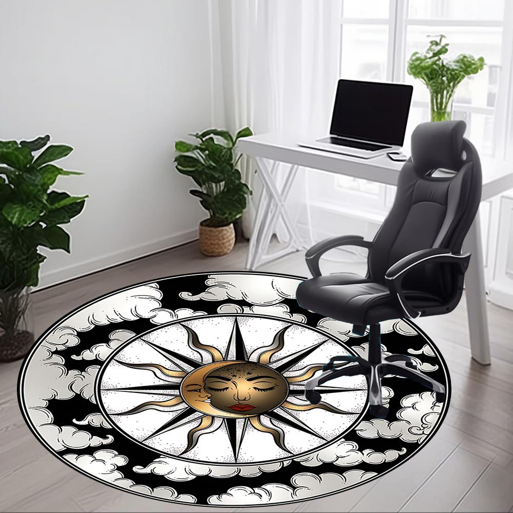 1pc Sun Compass Office Round Rug, Carpet for Office, Gaming, Lightweight Round Floor Mat yy260208057