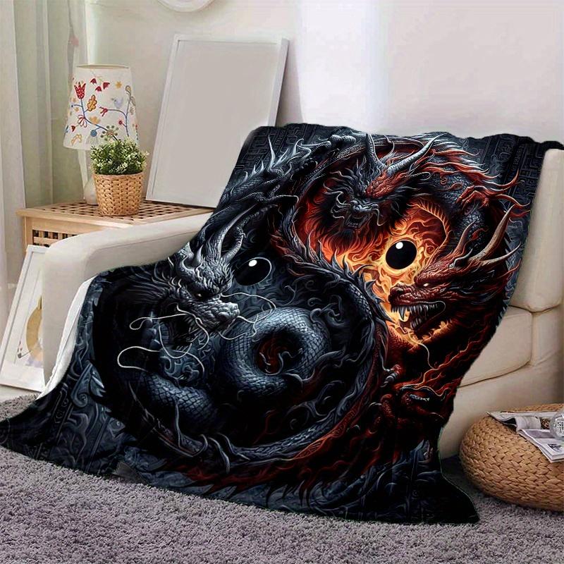1pc The Epic Battle of Red and Black Dragons Blanket Home Decorative Throw for Room, Cute Gift Idea, Living Room, Travel, Camping, Car Blankets
