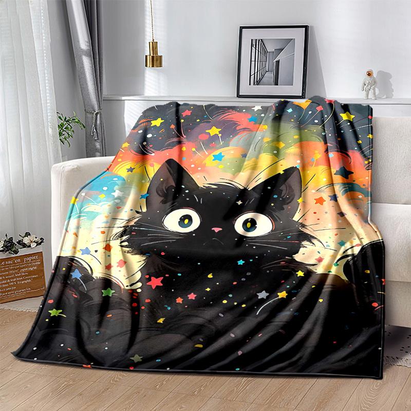 1pc Colorful Stars and Cats Cartoon Blanket Seasonal Home Decor Gift, Living Room, Travel, Camping, Car Blankets